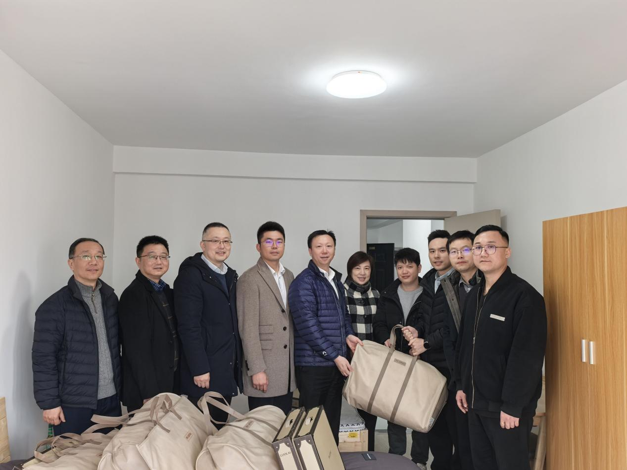 公司領導了解了每位員工的通勤安排及生活需求,并送上定制化床上用品套裝禮包,希望所有入住員工“既要住得舒心,更要住得安心”,遵守入住規(guī)范,注意安全問題,共同維護良好的居住環(huán)境。