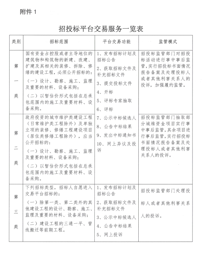 附件:1. 招投標(biāo)平臺(tái)交易服務(wù)一覽表